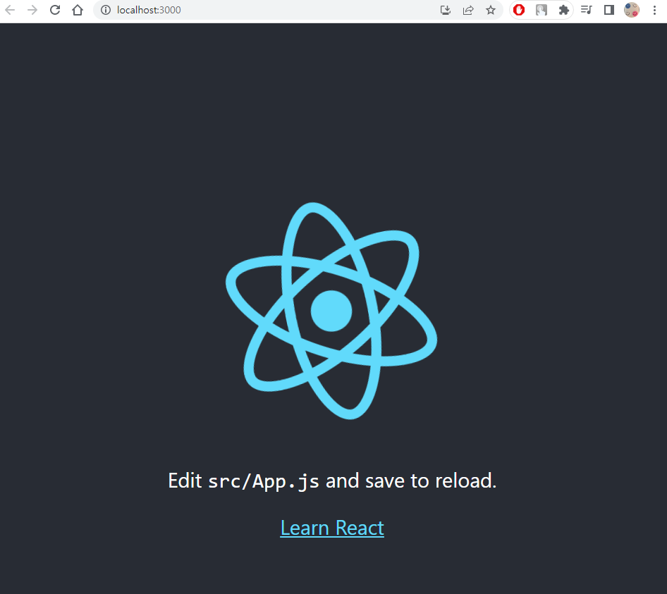 생성된 프로젝트의 App.js를 열어보면 다음과 같다. 이 프로젝트를 브라우저에 돌려보자.