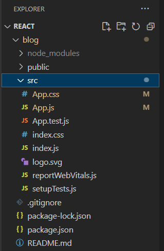 - public: static 파일 보관함(static 파일이란... 바뀌지 않는 로고, favicon 등), 리액트 프로젝트가 완성 되고 컴파일 되는 과정에서 소스들이 압축 되는데 static 폴더에 있으면 압축 되지 않음(원본 보존이 가능한 개념 같은..)