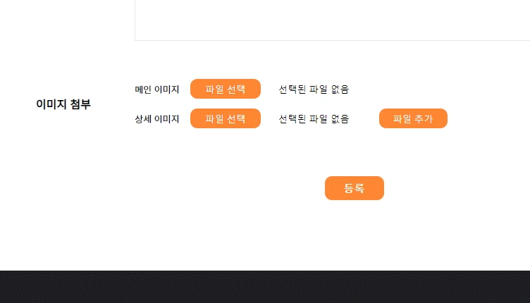 1 2 3 4 5 6 7 8 9 10 11 12 13 14 15 16 | <tr> <th class="header"><label for="file" >์ด๋ฏธ์ง ์ฒจ๋ถ</label></th> <td class="contents"> <div id = "main" style="margin-bottom: 11px;">๋ฉ์ธ ์ด๋ฏธ์ง <span> <input type="file" name="mainIamge" style="border: none; width: auto;"> </span> </div> ์์ธ ์ด๋ฏธ์ง <span> <input type="file" id="file" name="file_0" style="border: none; width: auto;"> <a href="#this" class="btn" id="addFileInput">ํ์ผ ์ถ๊ฐ</a> </span> <div id="fileDiv"></div> </td> </tr> | cs |