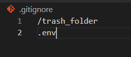 개발 시 필요한 프라이빗한 정보를 기입해놓은 파일(.env)과 깃에 올리지 않을 폴더(trash_folder)가 있다고 가정한다면