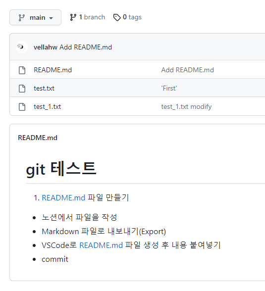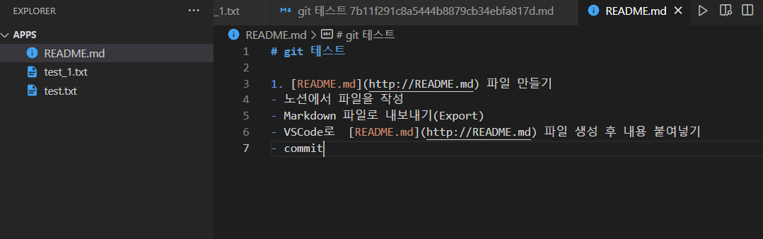 IDE에서 README.md로 파일을 생성하고 내보내기 한 파일의 내용을 복사-붙여준다.