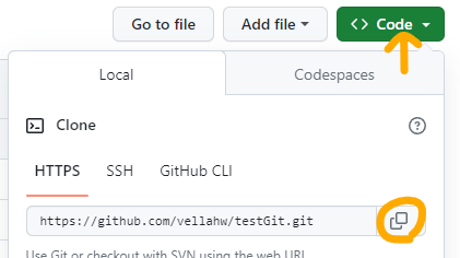 해당 레포지토리 화면에서 초록색 Code 버튼을 클릭 후 HTTPS 주소를 복사해준다.