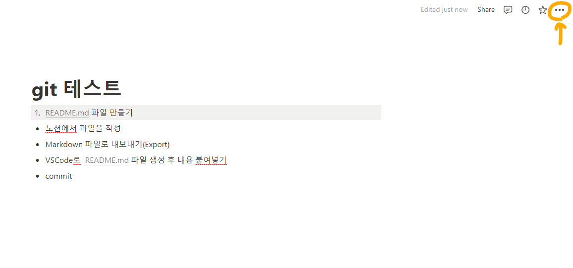 내용을 작성하고 사진 속 우측 상단 점 세 개 아이콘을 누른다.