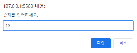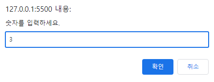 - 프롬프트 창에서 취소버튼을 누르면 입력이 취소되었다는 메시지 표시