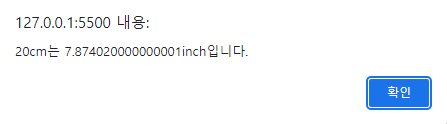 alert(cm + 'cm는 ' + result + 'inch입니다.');