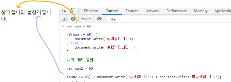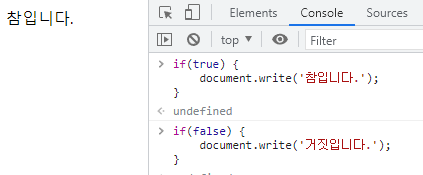 - 만약 조건이 하나이고 참과 거짓일 때, 결과를 다르게 나오고 하고 싶을 때 사용