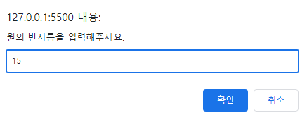 var radius = prompt('원의 반지름을 입력해주세요.');