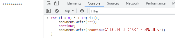 - continue : 이후의 문장은 실행되지 않고 continue 위 문장만 실행됨