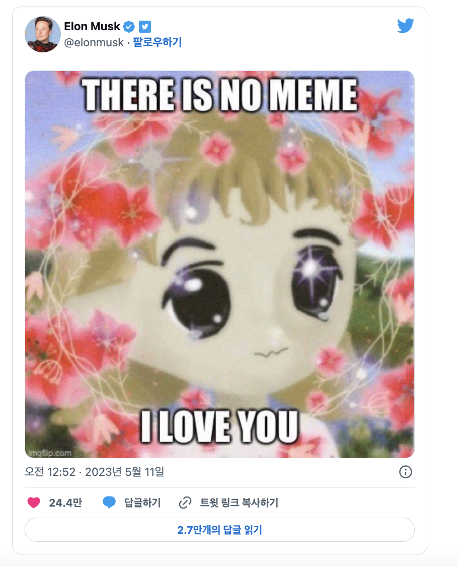 일론 머스크가 트위터에 사진을 올리고 가격 급등