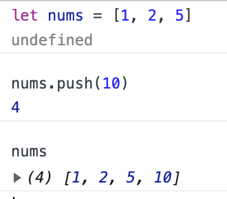 - push(): 배열의 맨 뒤에 요소를 추가한다.
