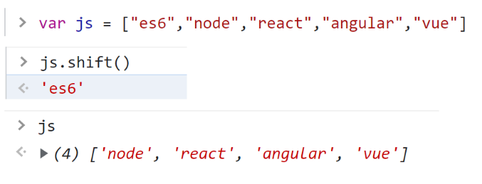 - shift(): 배열의 맨 앞 요소를 삭제한다.