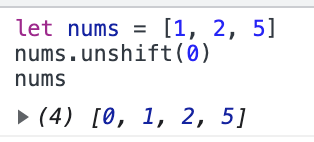 - unshift(): 배열의 맨 앞에 요소를 추가한다.