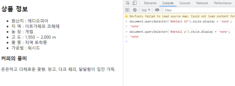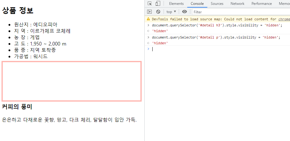 display는 요소가 있던 위치도 함께 사라지거나 보여진다. 위처럼 원본의 '상세설명' 부분이 아예 사라진다.