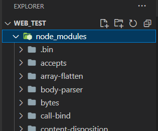 다른 폴더들은 express 라이브러리를 사용하기 위해 타고 타고 올라가서(?) 필요한 라이브러리들이다.