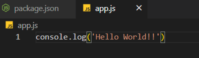 단순히 로그를 찍는 app.js라는 파일을 생성했다.