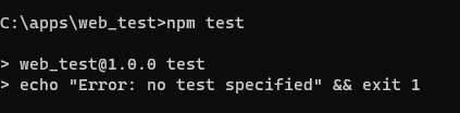 그 예로, cmd 창에 npm test를 입력하면 우측 문자열이 출력되는 것을 확인할 수 있다.