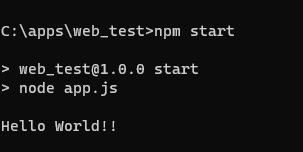 node app.js 즉, app.js를 실행시키는 명령어였으므로 사진과 같이 로그가 동일하게 찍히는 것을 확인할 수 있다.