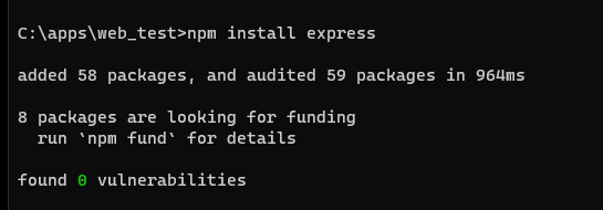 npm install 명령어를 사용하여 'express' 라이브러리를 다운로드 했다.