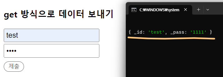 // get 형식으로 데이터를 보내면