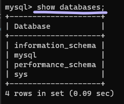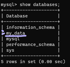 데이터베이스를 생성했으니 다시 show databases로 확인하면 정상적으로 생성된 것을 확인할 수 있다.
