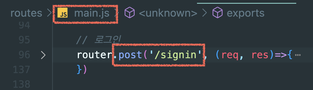 main.js 파일을 열고, post 방식 요청 /signin 주소 코드의 DB와의 커넥션 부분(?)을 아래와 같이 수정해주자.