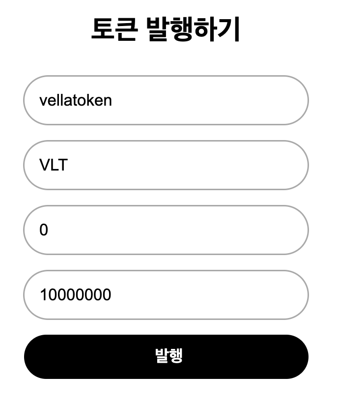 단순히 토큰 발행시 필요한 토큰의 이름, 심볼, 소수점 자리, 발행할 양을 입력할 폼을 만들었다.