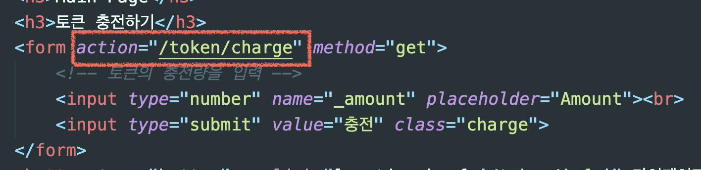 메인 페이지에서 충전 버튼을 누르면 /token/charge 주소로 이동한다.