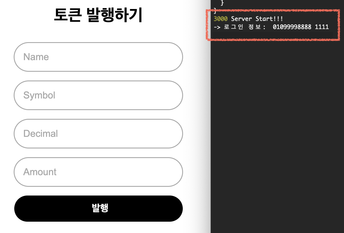 토큰 발행은 일반 유저가 아닌 관리자의 권한이라고 해주고, 관리자 번호(아이디)로 로그인 했을 때 토큰 발행 페이지로 이동하게 구현해보았다.
