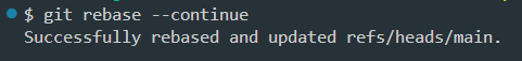위 git rabase 부터 --amend 수정 과정을 반복하면 사진처럼 Successfully~ 문구가 나온다.
