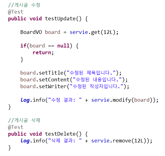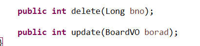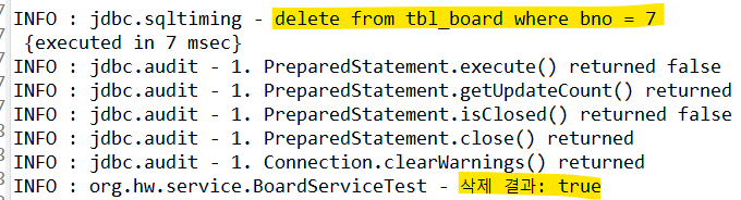 - 삭제/수정은 메소드의 리턴 타입을 void로 설계할 수도 있지만 엄격하게 처리하기 위해 boolean 타입으로 처리함