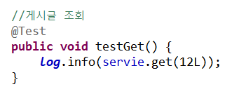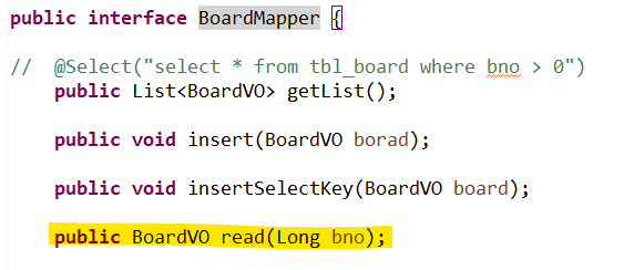 - 조회는 게시물의 번호가 파라미터이고 BoardVO의 인스턴스가 리턴됨