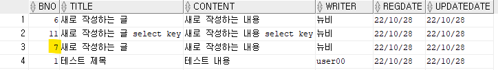 mapper의 insertSelectKey()를 이용해서 나중에 생성된 게시물의 번호를 확인할 수 있게 작성함