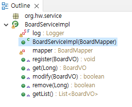 아웃라인을 확인 해보면 BoardMapper를 주입 받는 생성자가 만들어진 것을 확인 할 수 있음