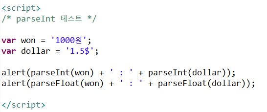 👀 parseInt(), parseFloat() 함수 테스트