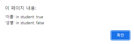 output += "'이름' in student: " + ('이름' in student) + "\n";